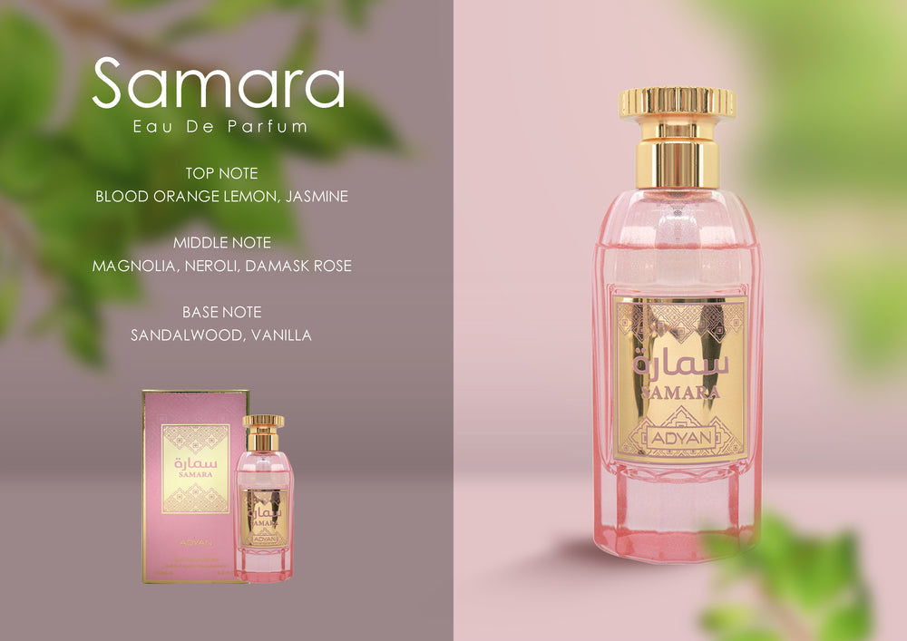 Wearing Samara By Adyan naturally boosts personal confidence with its refined and elegant aroma. Samara Eau De Parfum leaves a subtle yet noticeable impression. It complements your style and presence effortlessly. Its balanced composition makes you feel poised in any setting. Samara empowers you with every spray.